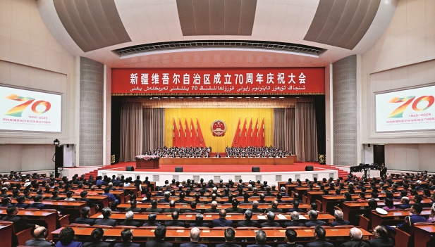 25 de septiembre de 2025. Celebración de una gran reunión con motivo del 70.º aniversario de la fundación de la región autónoma uigur de Xinjiang realizada en el Palacio del Pueblo de Xinjiang en la ciudad de Urumqi, la capital regional. Xinhua