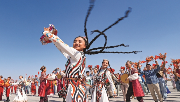 23 de septiembre de 2025. Un visitante baila con su hijo en el Gran Bazar Internacional de Urumqi. Wei Yao Redescubriendo Xinjiang “Pese a ser una persona que se crió en Xinjiang, siento que debo redescubrirla cada vez que regreso en busca de inspiración”, declaró Huang Jianxin, pintor local, al semanario Beijing Review. Nacido en 1949, se mudó a Hotan de niño y ha vivido allí desde entonces. Especializado en paisajes de Xinjiang, con dos obras expuestas en el Gran Palacio del Pueblo en Beijing, Huang comentó: “Durante los últimos años que he estado dibujando aquí, me ha impresionado la enorme transformación de la región”. En un viaje reciente a Tashkurgan, en el sur de Xinjiang, observó que el número de hoteles había aumentado de dos hace una década a más de 140. Huang también logró cumplir un sueño de toda la vida al visitar el cantón de Waqia, anteriormente inaccesible debido al mal estado de las carreteras. “Había querido ir desde la década de 1980 o 1990, cuando se tardaba dos días en llegar. El año pasado, una carretera de montaña asfaltada redujo el viaje a tres horas en coche, con carreteras pavimentadas que llegan a cada hogar. Ver por fin el paisaje de Waqia fue como descubrir un paraíso escondido”, contó. El libro blanco señala mejoras sustanciales en el transporte: la red de carreteras se expandió de 165.900 km en 2012 a 230.000 km en 2024, llegando a todas las prefecturas y a más del 90 % de los distritos. En tanto, la extensión ferroviaria aumentó de 4914 km a 9202 km, conectando todas las prefecturas y a más del 80 % de los distritos. Por otro lado, la región cuenta ahora con 595 rutas aéreas civiles, incluidas 25 rutas internacionales a 17 países y regiones, formando una red de aviación que conecta el este y el oeste. Xinjiang también ha diseñado planes para 10 tipos de redes de infraestructura que abarcan ferrocarriles, carreteras, aviación, energía, logística e informática, entre otros. La modernización de la red de transporte ha impulsado considerablemente el turismo en la región. Huang cree que los turistas se sienten cada vez más atraídos no solo por la belleza natural de Xinjiang, sino también por su riqueza cultural. El carácter multiétnico de la región se ha convertido en un atractivo turístico, así como la artesanía local, la cual está despertando un creciente interés. Ayiguli Maimaiti, una mujer uigur de 48 años, se mudó de Kashgar a Urumqi con su esposo Ainijiang Younusi hace 30 años para desarrollar su oficio. Ambos provienen de familias de artesanos; el padre de Ayiguli fabricaba cuchillos tradicionales Yingjisha. Al reflexionar sobre su infancia en una casa de adobe en la ciudad antigua de Kashgar, recordó los esfuerzos de su padre para hacerse cargo de la familia mediante la fabricación de cuchillos. Hoy, según declaró a Beijing Review, a los artesanos les resulta más fácil ganarse la vida gracias al creciente aprecio que sienten los turistas por la artesanía de Xinjiang. La pareja ahora tiene una tienda en el Gran Bazar Internacional especializada en tambores pintados e instrumentos artesanales, un oficio que sus dos hijos han continuado, abriendo sus propias tiendas en Urumqi. Para ellos, el bazar es un escenario sin paredes para la interacción étnica, donde se entremezclan instrumentos uigures, canciones kazajas y las risas de los turistas. La docena de instrumentos que ofrecen son también una ventana a Xinjiang. El libro blanco destaca los esfuerzos para integrar la cultura y el turismo, permitiendo a los visitantes experimentar tanto los paisajes de Xinjiang como su profunda cultura. Un plan de desarrollo busca crear clústeres industriales culturales y turísticos con un valor superior a un billón de yuanes (141.000 millones de dólares). Iniciativas como el Rally Taklimakan, la Vuelta al Lago Sayram y el Freeride World Tour están también ayudando a promover el turismo deportivo, mientras que el efecto de los clústeres industriales es cada vez más evidente. De esta forma, las visitas turísticas a Xinjiang pasaron de 48,6 millones en 2012 a 302 millones en 2024, un incremento de 6,21 veces, mientras que los ingresos por turismo alcanzaron los 359.500 millones de yuanes (50.000 millones de dólares) en 2024. Huang destacó el creciente papel de Xinjiang en la Iniciativa de la Franja y la Ruta. “Con el acceso sin visado a cinco países de Asia Central —Kazajistán, Uzbekistán, Kirguistán, Tayikistán y Turkmenistán—, llegarán más turistas internacionales, lo que fortalecerá los lazos entre Xinjiang y Asia Central”, afirmó. Al mencionar una próxima exposición de pintura al óleo en Kazajistán, añadió que “es probable que más artistas de Asia Central visiten Xinjiang. La Franja y la Ruta no es solo un corredor económico, sino también cultural”. |