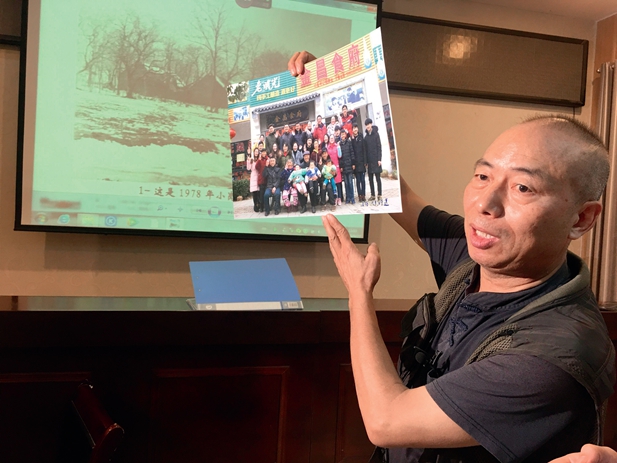 El periodista Liu Guoan, quien ha seguido de cerca el desarrollo de Xiaogang, muestra una foto de la famila de Yan Jinchang, uno de los dirigentes de la Contrata Global.