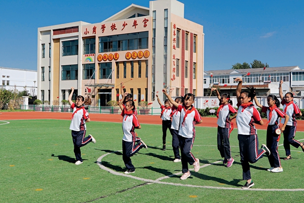 Niñas de una escuela de Xiaogang bailan una danza tradicional de la región llamada huagudeng. Fotos de Cnsphoto