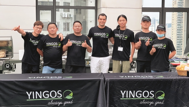 Rodrigo Riveros con parte de su equipo de Yingos en un evento. Probando suerte Si bien Shanghai caló hondo en ese momento, la juventud y las ganas de explorar el mundo llevaron al chileno a instalarse en Australia en el marco del programa Working Holiday —una opción que ha ido ganando una creciente popularidad entre jóvenes de diversas nacionalidades, y que permite trabajar y viajar por un periodo de un año— para luego empezar un extenso recorrido por el mundo. Cuando ese viaje llegó a su fin el 28 de marzo de 2014, el destino elegido no fue Chile —donde estaban su familia y amigos, además de toda su red de contactos— sino China. “Elegí Shanghai porque ya había estado en 2009 y 2010 y me encantaba”, señala. “Era una ciudad muy dinámica, llena de oportunidades, con muchos extranjeros y donde era muy fácil conocer gente”. Y así fue. Pese a que el joven profesional llegó sin trabajo, las oportunidades no tardaron en llegar. Para 2010, China ya se había consolidado como la segunda economía del mundo, gracias a lo cual había un ferviente ambiente económico y muchas posibilidades de emprender en el momento en que el chileno se mudó de manera definitiva. “Pocos días después de llegar conocí a algunos chilenos. En una de esas reuniones compré una botella de pisco y la persona que me la vendió estaba iniciando un proyecto: una revista sobre vino. Este terminó siendo mi primer trabajo en China”, relata. Chile se ha consolidado como uno de los mayores productores de vino a nivel mundial, destacando la relación precio-calidad por sobre otros productores tradicionales como Francia o España. De este modo, el país latinoamericano se sitúa hoy entre los tres principales países desde los cuales China importa vino para un mercado en alza y con un gran poder adquisitivo. Pese a ello, Rodrigo Riveros se percató de que aún existía cierto grado de desconocimiento entre los consumidores chinos, habituados al icónico baijiu (licor de arroz). “Antes de venir a Shanghai trabajé en una empresa china en Chile, ZTE”, cuenta. “Me tocaba salir mucho con clientes y noté que muchas veces los chinos no sabían bien cómo elegir vinos para distintas ocasiones”, lo que lo motivó a aprender más sobre el vino a través de catas y a hacerse socio del Club de Amantes de Vino (CAV), la comunidad más grande de vinos en Chile creada en 1997 para vincular viñas con consumidores. Junto con la importación de vinos, Rodrigo Riveros empezó a incursionar con la carne, el salmón y el pollo, hasta crear su propia tienda online debido a la alta demanda por estos productos. “Con el tiempo, terminamos creando un supermercado online enfocado en productos importados”, relata. Una oportunidad que, según dice, surgió en gran parte por la cantidad de extranjeros que había en esa época.