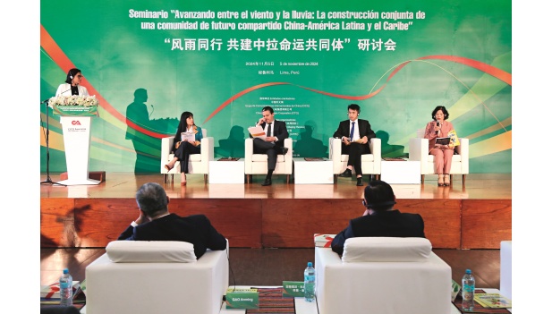 5 de noviembre de 2024. El seminario “Avanzando entre el viento y la lluvia: La construcción conjunta de una comunidad de futuro compartido China-América Latina y el Caribe” se lleva a cabo en Lima. Fotos de Juan Carlos Aguilar EL 5 de noviembre, se llevó a cabo en Lima, la capital de Perú, el seminario “Avanzando entre el viento y la lluvia: La construcción conjunta de una comunidad de futuro compartido China-América Latina y el Caribe”, orientado por el Grupo de Comunicaciones Internacionales de China (CICG, por sus siglas en inglés) y China Three Gorges Corporation (CTG). El evento, que contó con la organización del Centro para las Américas de CICG y China Yangtze Power de CTG, convocó a importantes autoridades de CICG Américas, así como a destacados representantes de los sectores político, empresarial y académico de China y Perú, quienes compartieron sus experiencias y reflexiones en torno a la colaboración entre ambas naciones para lograr un mejor futuro compartido entre China y esta región de América. Li Yafang, directora general del Centro para las Américas de CICG, fue la presentadora de la ceremonia, en la cual participaron Gao Anming, redactor jefe de CICG; Gustavo Cordero Jon Tay, congresista de la República de Perú y presidente del Comité Ejecutivo de la Liga Parlamentaria de Amistad Perú-China; Qu Weihua, vicepresidente de China Changdian International; y Enrique Cornejo, exministro de Transportes y Comunicaciones de Perú. También asistieron Eduardo Yong Motta, presidente del Instituto Peruano Chino; Mario Gonzales, gerente general de Luz del Sur; Wang Lei, académico de la Universidad Normal de Beijing; y Carlos Aquino, director del Centro de Estudios Asiáticos de la Universidad Nacional Mayor de San Marcos. El desarrollo de los vínculos Gao Anming, redactor jefe de CICG, recordó que este 2024 se cumplieron diez años de la propuesta del presidente Xi Jinping de construir una comunidad de futuro compartido China-América Latina y el Caribe (ALC) y del Foro China-CELAC. En esta década, afirmó, la cooperación amistosa se ha caracterizado por la igualdad y el beneficio mutuo en economía y comercio. Asimismo, destacó tres aspectos fundamentales sobre el desarrollo de estos vínculos bilaterales. “En primer lugar, la confianza política mutua ha mejorado y la diplomacia de jefes de Estado ha promovido la estabilidad y el desarrollo. La confianza política mutua continúa profundizándose y la cooperación práctica sigue expandiéndose”, dijo Gao. En segundo lugar, subrayó que la cooperación económica y comercial sigue aumentando. “El comercio de bienes creció a casi 500.000 millones de dólares en 2023, mientras que la inversión de China aumentó a casi 600.000 millones de dólares en 2022. China se ha mantenido como el segundo socio comercial de ALC y es la tercera fuente de inversión en la región”, detalló. En tercer lugar, Gao recalcó que China y ALC están cada vez más conectadas en términos culturales, educativos y amistosos. “La amistad entre países reside en la amistad mutua entre los pueblos y solo una amistad de corazón puede ser duradera”, manifestó. Posteriormente, Gustavo Cordero Jon Tay, presidente de la Liga Parlamentaria de Amistad Perú-China, resaltó la modernización de China y su interés en que la región de América Latina y el Caribe vaya por el mismo camino. “China promueve valores de desarrollo, equidad, justicia social y la construcción de la modernización para América Latina y el Caribe, con el único objetivo de mejorar la calidad de vida de los ciudadanos y de los países con los cuales tiene acuerdos bilaterales y relaciones diplomáticas”, mencionó. En este sentido, Cordero Jon Tay destacó que en la última década, la economía del país asiático haya crecido a pasos agigantados, gracias a un cambio de orientación hacia el desarrollo de alta calidad. “Esto, sin lugar a dudas, contribuirá en la cooperación de China con los países en desarrollo; por ello, debemos tener presente que China apoya firmemente a los países de América Latina. En el caso específico de Perú, debemos resaltar un impacto de las inversiones de China, pues es el segundo destino de la inversión china en América Latina, solo superado por Brasil”. Cordero Jon Tay consideró que la erradicación de la pobreza en China es una experiencia muy importante de la cual Perú puede aprender mucho. “Fortaleciendo los lazos de amistad y cooperación entre ambas naciones podremos tener un modelo exitoso en la lucha por la erradicación de la pobreza y la pobreza extrema en nuestro país. China está dispuesta a crear oportunidades compartidas con beneficios para poder promover un desarrollo constante a través del tiempo”, agregó. Relaciones comerciales Qu Weihua, vicepresidente de China Changdian International, celebró el trabajo conjunto que China y Perú realizan para impulsar la calidad de servicio en la distribución de la electricidad en el país sudamericano, así como la expansión de energías que sean amigables con el medio ambiente, como la eólica y la solar. Qu hizo hincapié en que la empresa China Yangtze Power (CYPC) proporciona electricidad de alta calidad a 1,3 millones de usuarios peruanos. “Se ha enfocado en la adquisición de acciones y en el desarrollo de terrenos verdes”, lo que la ha convertido “en la primera empresa china en entrar en el mercado de energía renovable en Perú”, recalcó. Asimismo, Qu expresó sus deseos de que China y Perú “puedan continuar trabajando juntos para construir una comunidad de futuro compartido China-ALC, y promover el desarrollo económico y el progreso social de los dos países y del conjunto de la región”. En su turno, Enrique Cornejo, exministro de Transportes y Comunicaciones de Perú, rememoró la larga amistad que China tiene con el país latinoamericano, y recordó al público asistente las estrechas relaciones comercial