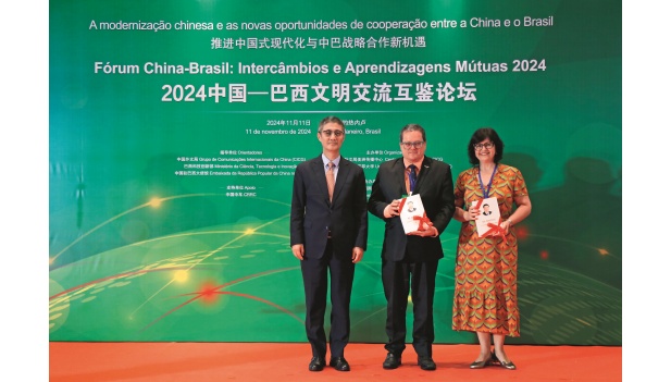 Li Yafang, directora general del Centro para las Américas de CICG, preside el foro. Fotos de Juan Carlos Aguilar EL 11 de noviembre, la ciudad de Río de Janeiro acogió la tercera edición del Foro China-Brasil: Intercambios y Aprendizajes Mutuos. Bajo el tema “La modernización china y las nuevas oportunidades de cooperación entre China y Brasil”, el evento contó con la presencia de líderes políticos, académicos y empresarios de ambos países, quienes debatieron estrategias en pos del fortalecimiento de la relación bilateral y las posibilidades de cooperación en áreas como la innovación, la sostenibilidad y la infraestructura. El programa incluyó discursos de autoridades chinas y brasileñas, así como el lanzamiento de productos culturales, lo que marcó un paso importante en la consolidación del diálogo entre Brasil y China. Amistad y entendimiento mutuo Al dar inicio al foro, Li Yafang, directora general del Centro para las Américas del Grupo de Comunicaciones Internacionales de China (CICG, por sus siglas en inglés), destacó la importancia del intercambio de experiencias y de los intercambios culturales para fortalecer la amistad y el entendimiento mutuo entre ambos países. Gao Anming, redactor jefe de CICG, señaló que la modernización china ofrece nuevas oportunidades para que China y Brasil construyan una comunidad de futuro compartido. Ambos países deben alinear sus estrategias, adherirse a nuevos objetivos, reforzar las áreas tradicionales de cooperación y explorar nuevas posibilidades para dar un nuevo impulso al desarrollo conjunto, añadió Gao, quien consideró que el mundo está atravesando un periodo de cambios acelerados y turbulencias, pero que la dirección general del desarrollo y del progreso humano, la lógica de la historia mundial y la tendencia hacia una comunidad internacional de futuro compartido siguen vigentes. La participación brasileña comenzó con Ronaldo Carmona, representante de Innovación de la Financiadora de Estudios y Proyectos (Finep), quien destacó que el foro se celebraba en un momento especial, en vísperas de la Cumbre de Líderes del G20. Para la Finep, la alianza entre Brasil y China es aún más importante en un escenario geopolítico turbulento, pues crea una oportunidad de diálogo entre los países del G7 y las naciones emergentes. Asimismo, Carmona resaltó la histórica cooperación sino-brasileña en ciencia y tecnología, especialmente en el sector espacial con el programa de satélites CBERS, que refuerza la autonomía tecnológica de ambas naciones. Del mismo modo, consideró que la asociación entre Brasil y China debe evolucionar también en el plano cultural y subrayó la necesidad de crear nuevos proyectos que celebren las singularidades de cada país. En representación de la Universidad Federal Fluminense, Cibele Carneiro se refirió a las áreas en las que Brasil y China han trabajado en conjunto, como educación, ciencia, tecnología y desarrollo sostenible. Según Carneiro, la asociación bilateral busca formar una generación intercultural y fomentar el entendimiento mutuo al valorar las individualidades culturales. Además, puso énfasis en tres frentes prioritarios de cooperación: educación, innovación y sostenibilidad. Carneiro manifestó que Brasil y China pueden contribuir al desarrollo global a través de la educación y la innovación sostenible, e hizo hincapié en la importancia de la interacción cultural y el respeto mutuo. “El que movió la montaña fue el que movió las primeras piedras”, dijo Carneiro, como una forma de incentivar la creación de nuevos planes en el marco de la cooperación sino-brasileña. Medio siglo de relaciones Marcos Bezerra Abbott Galvão, embajador de Brasil en China, compartió sus ideas en un discurso grabado. “Este foro se realiza en un momento único de la relación sino-brasileña. Estamos celebrando 50 años de relaciones diplomáticas entre Brasil y China en el punto más alto de nuestra relación bilateral”, expresó. Galvão afirmó que, a lo largo de las últimas cinco décadas, los dos países han superado diferencias y fortalecido sus similitudes, lo que ha permitido construir una asociación marcada por el respeto y la confianza mutuos. El embajador también celebró los proyectos de cooperación en distintas áreas como medio ambiente, comercio, finanzas, agricultura, ciencia y tecnología. Tian Min, cónsul general de China en Río de Janeiro, destacó que en los últimos 50 años, ambos países han ejercido el respeto mutuo al tratarse como iguales y comprometerse a cooperar en la promoción del desarrollo sostenible, estable y profundo de la relación bilateral. Tian añadió que en la actualidad, China mantiene en alto la bandera de la paz, el desarrollo y la cooperación mutuamente beneficiosa, con lo que promueve inquebrantablemente la modernización china a través de un desarrollo de alta calidad, al tiempo que se integra y promueve el desarrollo global mediante la apertura al exterior a un alto nivel. En ese sentido, dijo que China está dispuesta a trabajar con Brasil en una cooperación mutuamente beneficiosa de mayor alcance, mayor calidad y mejor estructura. Liu Kean, vicepresidente de la firma china CRRC, recordó que desde su entrada en el mercado brasileño en 2003, CRRC ha superado retos y se ha ganado el respeto de la población local. Liu precisó que a través de un “modelo de cinco localizaciones”, que incluye producción local, contratación local, empleo local, servicio local y gestión local, CRRC ha logrado convertirse en un intérprete cultural, un desarrollador industrial, un incubador de talentos y un buen vecino. Al cumplir estas cuatro funciones, CRRC ha contribuido al desarrollo económico local y a mejorar el bienestar de la población, recalcó Liu, quien aseguró que la empresa seguirá trabajando con todas las partes para fortalecer la cooperación sino-brasileña en múltiples sectores, tend