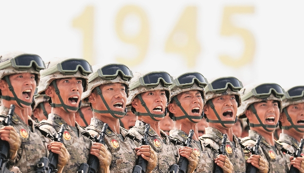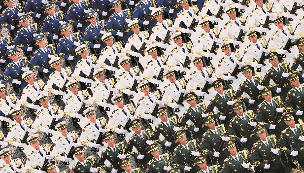 1. La formación de las Guardias de Honor del Ejército Popular de Liberación (EPL) de China durante el desfile militar. Xinhua