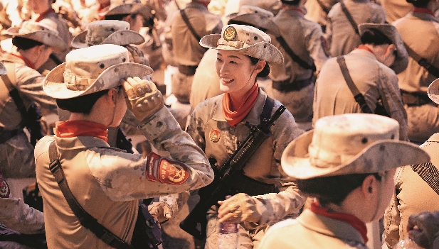 4. La formación de la Fuerza del Ciberespacio del Ejército Popular de Liberación (EPL) durante el desfile militar. Xinhua
