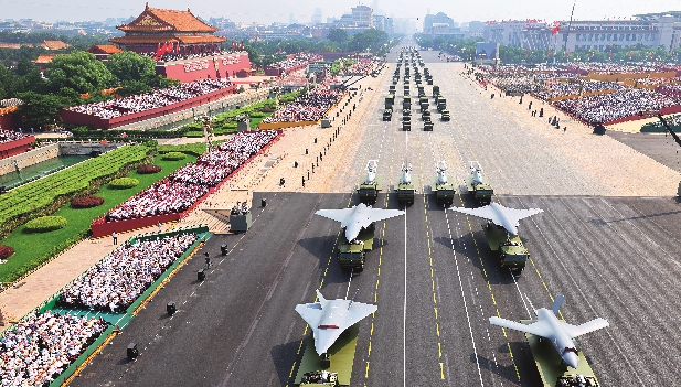 1. La formación de armamento de defensa durante el desfile militar. Xinhua