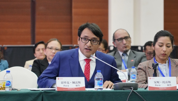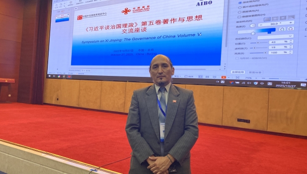 El simposio sobre Xi Jinping: La gobernación y administración de China (V) tuvo lugar en Beijing el pasado 28 de octubre. Organizado por el Instituto de Estudios Internacionales y Capacitación Avanzada del Grupo de Comunicaciones Internacionales de China (CICG, por sus siglas en inglés), en colaboración con la Academia para Funcionarios de Negocios Internacionales (AIBO, por sus siglas en inglés) del Ministerio de Comercio de China, el evento contó con la presencia de Yu Tao, vicepresidente de CICG y Chen Runyun, vicepresidente de AIBO, quienes además pronunciaron importantes discursos frente al resto de los participantes. Un instante capturado durante el evento. Foto de cortesía Tanto chinos como extranjeros leyeron extractos del último tomo de Xi Jinping: La gobernación y administración de China. Además, bajo el espíritu de la IV Sesión Plenaria del XX Comité Central del Partido Comunista de China (PCCh) y las propuestas del XV Plan Quinquenal, se produjo un nutrido intercambio y deliberaciones relacionados con la implementación de la Iniciativa para el Desarrollo Global, la Iniciativa para la Seguridad Global, la Iniciativa para la Civilización Global y la Iniciativa para la Gobernanza Global. En total, más de 100 funcionarios y expertos de 17 países, incluidos aproximadamente 30 profesionales de diversos medios de comunicación de Perú, asistieron al evento. Asimismo, hubo asistentes del ámbito económico, comercial, diplomático y periodístico, entre otros campos. Participantes del evento. Foto de cortesía Según Luis Enrique Pérez, investigador de la Universidad Antonio Ruiz de Montoya, en Perú, el XV Plan Quinquenal de China ha abierto amplios espacios de cooperación con los países en desarrollo. En esa misma línea, señaló que era necesario integrar el contexto cultural, la resonancia emocional y la sensibilidad histórica en la comunicación, para fomentar la cooperación e impulsar un desarrollo mutuamente beneficioso, transparente y sostenible. Luis Enrique Pérez. Foto de cortesía Mario Romanet, subdirector de Cobertura Especial del Instituto Nacional de Radio y Televisión del Perú, señaló que el simposio era crucial para comprender el horizonte y el propósito chino —fuertemente vinculados al medio ambiente, la paz y la cooperación interestatal—, y que la clave para una colaboración más estrecha entre China y Perú radica en conocerse y entenderse más allá de los niveles estatal, político o comercial. “Tiene que ser a nivel de toda la población, de cada individuo”, manifestó. Asimismo, Romanet destacó que el plan quinquenal chino se distingue por su alto nivel de planificación estructurada y la consecución escalonada de logros, lo que simboliza orden, persistencia en los propósitos y cumplimiento riguroso de cometidos, lo cual, a su juicio, constituye un gran ejemplo a nivel global. Por otro lado, expresó su convicción de que China no solo alcanzaría los objetivos del XV Plan Quinquenal, sino que también demostraría su verdadero potencial al mundo y lograría que otros países del planeta realmente entiendan la naturaleza de su desarrollo.