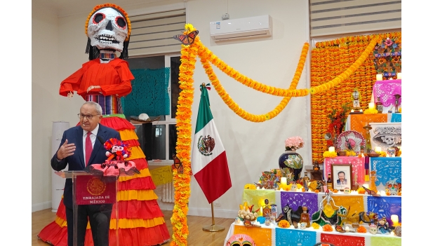 Con coloridas flores, guirnaldas, retratos y calaveras, se inauguró el Altar de Muertos en la Embajada de México en Beijing la tarde del 30 de octubre de 2025. Entre los asistentes de esta tradicional fiesta del calendario mexicano, se encontraban el embajador Jesús Seade, el director de la UNAM en China Adalberto Noyola Robles y la artista Karla de Lara, entre otros invitados.