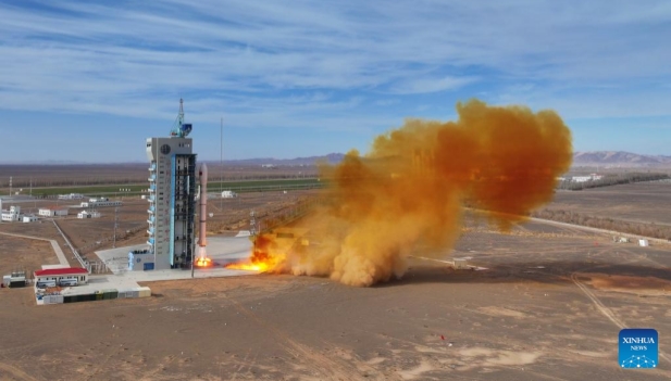 (Foto por Wang Heng/Xinhua) China lanzó hoy miércoles al espacio un cohete portador Gran Marcha-2C con tres nuevos satélites. El vehículo despegó a las 12:01 (hora de Beijing) desde el Centro de Lanzamiento de Satélites de Jiuquan, en el noroeste del país, transportando los satélites Shijian-30A, Shijian-30B y Shijian-30C a las órbitas preestablecidas. Estos artefactos se utilizarán principalmente para la exploración del entorno espacial y la verificación tecnológica relacionada. La del miércoles fue la misión de vuelo número 608 de la serie de cohetes portadores Gran Marcha.