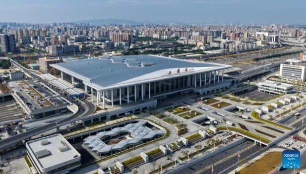 Vista aérea tomada con un dron el 22 de diciembre de 2025 de la Estación de Ferrocarril de Shantou, en la ciudad de Shantou, en la provincia de Guangdong, en el sur de China. El tramo Shantou-Shantou Sur del ferrocarril de alta velocidad Shantou-Shanwei, de 162 kilómetros de longitud, se completó y abrió al tráfico el lunes, marcando la puesta en funcionamiento de toda la línea ferroviaria. (Xinhua/Yao Jun) |