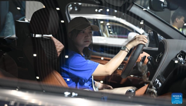 Una visitante experimenta un automóvil Bentley durante la sexta Exposición Internacional de Productos de Consumo de China (CICPE, por sus siglas en inglés), en Haikou, en la provincia de Hainan, en el sur de China, el 16 de abril de 2026. La sexta CICPE ha ampliado su escala, con una superficie de exposición de 143.000 metros cuadrados, 13.000 más que en la edición anterior. Las exposiciones internacionales representan el 65 por ciento del total, lo que constituye un aumento de 20 puntos porcentuales con respecto al año pasado. (Xinhua/Pu Xiaoxu)