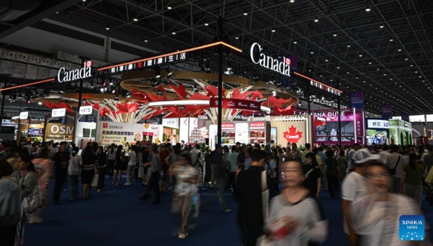 Imagen del 16 de abril de 2026 de una vista del pabellón de Canadá, invitado de honor de la sexta Exposición Internacional de Productos de Consumo de China (CICPE, por sus siglas en inglés), en Haikou, en la provincia de Hainan, en el sur de China. La sexta CICPE ha ampliado su escala, con una superficie de exposición de 143.000 metros cuadrados, 13.000 más que en la edición anterior. Las exposiciones internacionales representan el 65 por ciento del total, lo que constituye un aumento de 20 puntos porcentuales con respecto al año pasado. (Xinhua/Pu Xiaoxu)