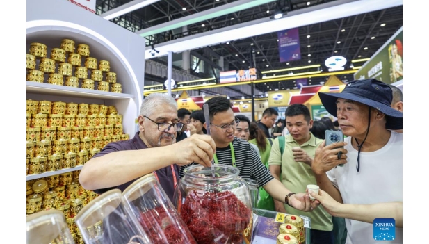 Imagen del 15 de abril de 2026 de visitantes aprendiendo sobre los productos iraníes durante la sexta Exposición Internacional de Productos de Consumo de China (CICPE, por sus siglas en inglés), en Haikou, en la provincia de Hainan, en el sur de China. La sexta CICPE ha ampliado su escala, con una superficie de exposición de 143.000 metros cuadrados, 13.000 más que en la edición anterior. Las exposiciones internacionales representan el 65 por ciento del total, lo que constituye un aumento de 20 puntos porcentuales con respecto al año pasado. (Xinhua/Zhang Liyun) |