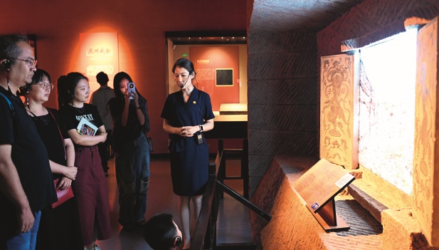 1 de septiembre de 2024. Visitantes aprecian una puerta tallada con bailarines sogdianos en remolino en el Museo de Ningxia. Xinhua Educación pública El Museo de Ningxia se dedica a la difusión de la cultura tradicional a través de una amplia gama de programas educativos para el público. Para los jóvenes, el museo ofrece programas de visitas educativas, que incluyen un campamento de formación para guías juveniles, experiencias de dramatización y actividades prácticas. Estas iniciativas contribuyen a fomentar el interés por la historia entre los jóvenes participantes. El museo también promueve las tradiciones culturales mediante exposiciones de patrimonio cultural inmaterial, demostraciones de habilidades y talleres de artesanía tradicional, como el recorte de papel, la escultura en arcilla y la imprenta de tipos móviles. Además, el museo integra la educación sobre la normativa de protección del patrimonio cultural en sus programas, utilizando cuestionarios, exposiciones y conferencias para concienciar al público sobre el sistema de conservación del patrimonio de China. |