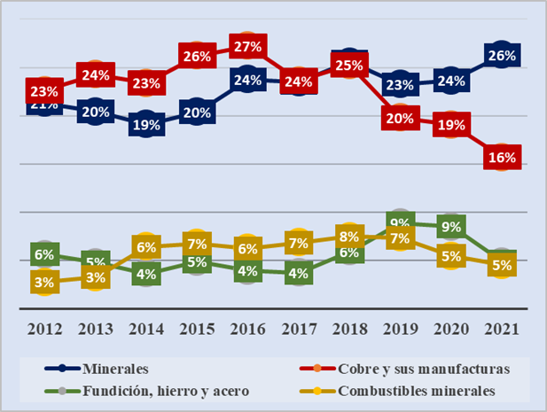 Esta es una buena noticia para los países latinoamericanos, que por tradición son exportadores de minerales y que se han beneficiado del crecimiento económico de China desde un comienzo gracias a su gran demanda de minerales, que aumentó los precios internacionales de estos. Como se puede ver en el Gráfico 4, de todo lo que China importó en concentrado de minerales desde el mundo en 2021, ALC le proveyó del 26 %, y Brasil, Chile, Perú y México se encontraron dentro de los principales seis proveedores.