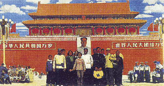 La técnica del óleo y los demás lenguajes artísticos de la década recibieron la influencia, sobre todo, de los artistas rusos. De 1955 a 1957, Constantino M. Makchmov, pintor al óleo de la ex Unión Soviética, vino a China a impartir un curso avanzado sobre esta técnica en la Academia Central de Bellas Artes, invitado por el Gobierno chino. Los estudiantes del pintor ruso fueron en su mayoría los jóvenes que luego conformaron toda una generación de creadores de óleos de China, entre ellos Jin Shangyi (1934- ), Zhan Jianjun (1931- ), He Kongde (1925- ), Wang Wenbin (1932- ) y Sun Zixi (1929- ), quienes concibieron Retrato de cuerpo entero del Presidente Mao, Cinco héroes en la Montaña Langya, Antes del ataque, Canción para el trabajo de apisonar y Tener una foto frente a la tribuna de Tian'anmen, respectivamente. Rebosando espíritu revolucionario, estas obras se basan en personas y eventos reales, se caracterizan por los fuertes colores de la época y marcan el nuevo capítulo de la historia del desarrollo de las bellas artes de la Nueva China.