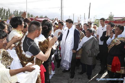 En la aldea de Changjiangyuan, Xi fue recibido con calidez por aldeanos tibetanos que se trasladaron al lugar en el 2004 lejos de las fuentes de los ríos Yangtse, Amarillo y Lancang. La protección de las fuentes de los tres ríos implica la reubicación de las personas que antes residían en estos sitios.