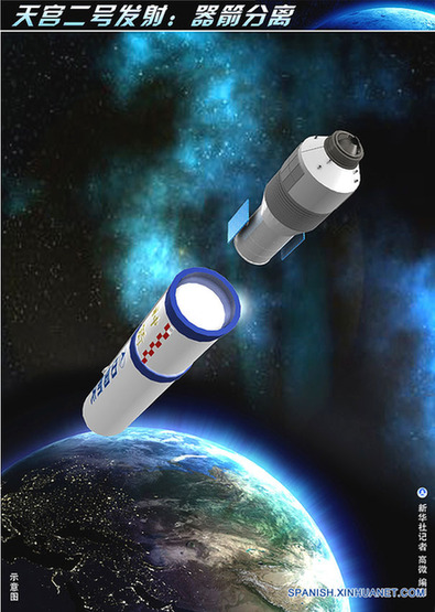 El Tiangong-2 se separó del cohete y entró en la órbita preestablecida 575 segundos después del despegue, dijo el control de la misión en un comunicado.