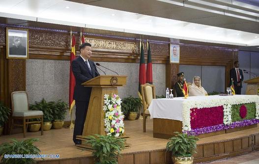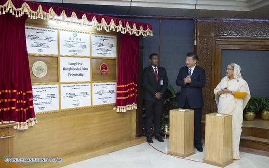 Xi llegó a Dacca horas antes para hacer una visita de Estado, la primera de un jefe de Estado chino a esta nación de Asia del sur en 30 años.