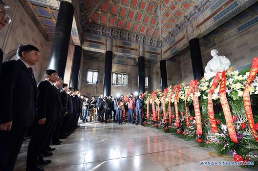 En Nanjing, la capital de la provincia de Jiangsu, cerca de 200 funcionarios y residentes visitaron el mausoleo de Sun para rendirle tributo.