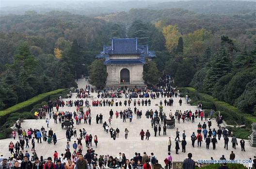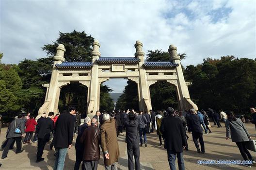 Personas visitan el Mausoleo de Sun Yat-sen, con motivo del aniversario 150 de su nacimiento, en Nanjing, capital de la provincia de Jiangsu, en el este de China, el 12 de noviembre de 2016. Nacido en 1866, Sun Yat-sen fue fundador del partido Kuomintang y un venerado líder revolucionario que desempeñó un papel decisivo en el derrocamiento del gobierno imperial en China. (Xinhua/Sun Can)