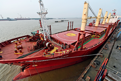 20 de marzo de 2016. El primer lote de 11.330 toneladas de concentrado de cobre de la mina Las Bambas (Perú) llega al puerto de Nanjing (China). La mina fue adquirida por China Minmetals, China Reform y CITIC. Xinhua