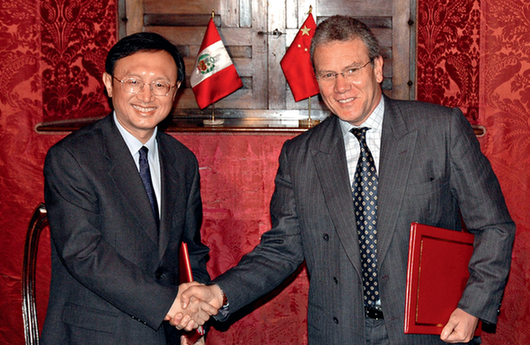 Gracias a esta sólida base y bajo el impulso directo de los dirigentes de alto nivel, continúa estrechándose la relación entre China y Perú. En noviembre de 2008, ambas naciones declararon la creación de una “asociación estratégica”, cuyo estatus, en abril de 2013, pasó a ser el de “asociación estratégica integral”. Así, después de Brasil, México, Argentina y Venezuela, el Perú se convirtió en el nuevo socio estratégico integral de China en América Latina. Bajo un sistema de negociaciones políticas entre los ministerios de relaciones exteriores de ambos países, se han organizado nueve negociaciones políticas que promueven en gran medida el conocimiento y la confianza mutuos.